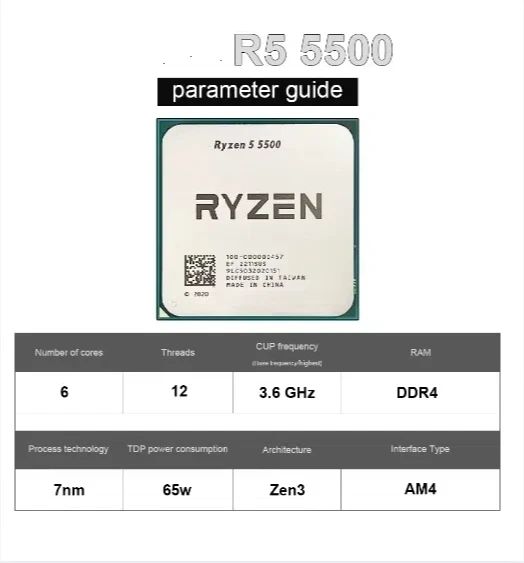 Processador de CPU R5 5500 R5 5500 100% novo soquete de 6 núcleos AM4 65W CPU de computador para jogos de mesa